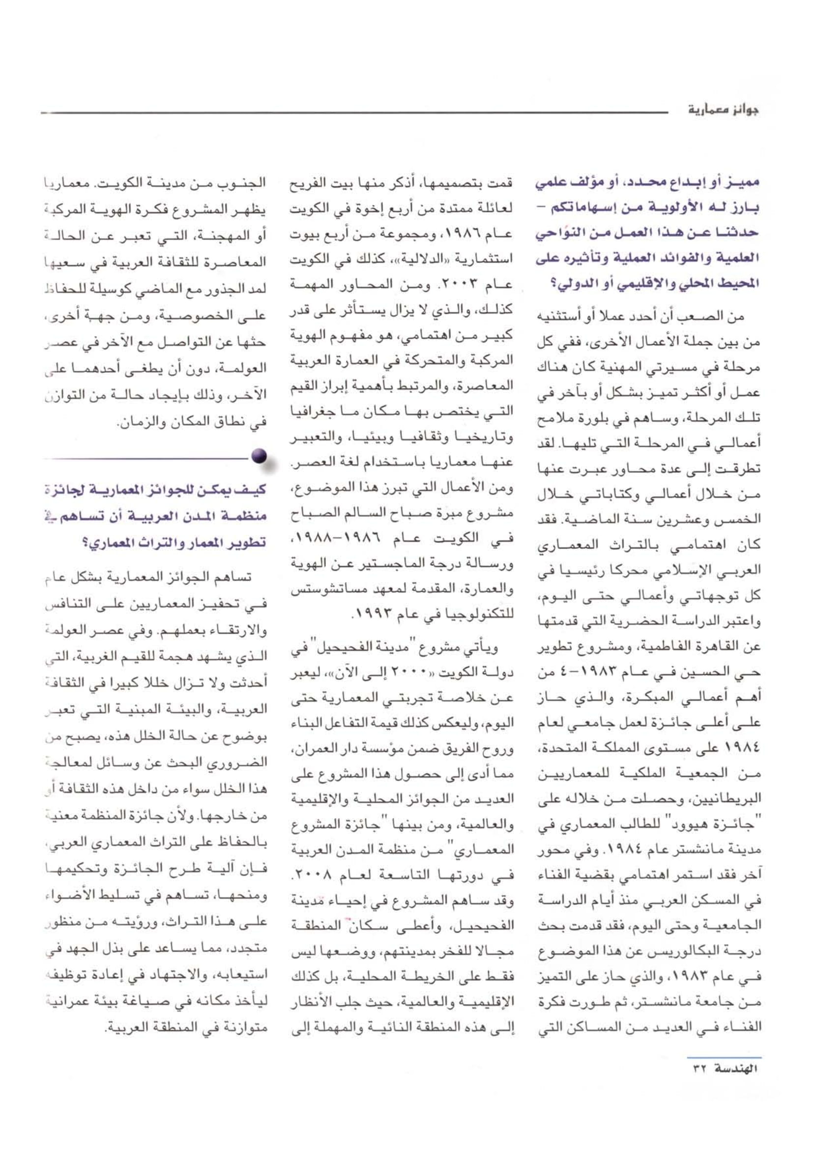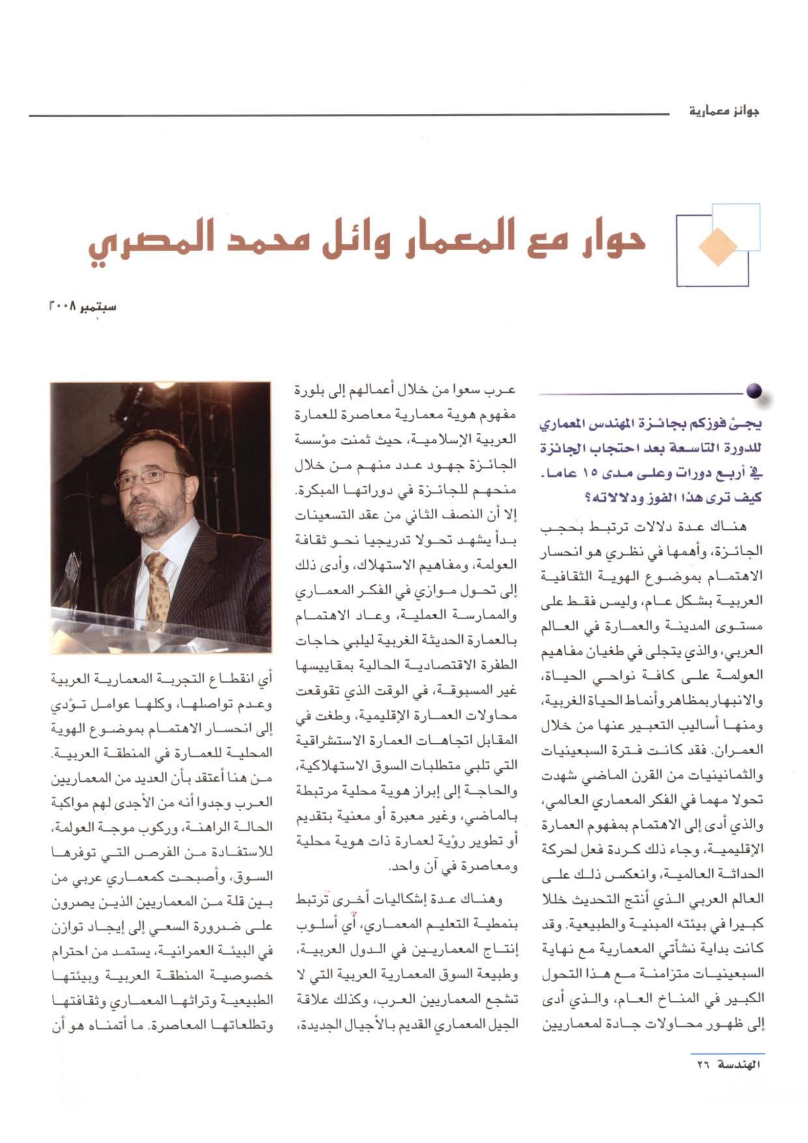 Page 1 Page 2 Page 3 Page 4 Page 5 Page 6 Page 7 Page 8 أكتوبر 2008 "حوار مع المعمار وائل محمد المصري" مجلة الهندسة، المجلد السادس، العدد 15، أكتوبر، نوفمبر، ديسمبر 2008 من أعمال وائل المصري